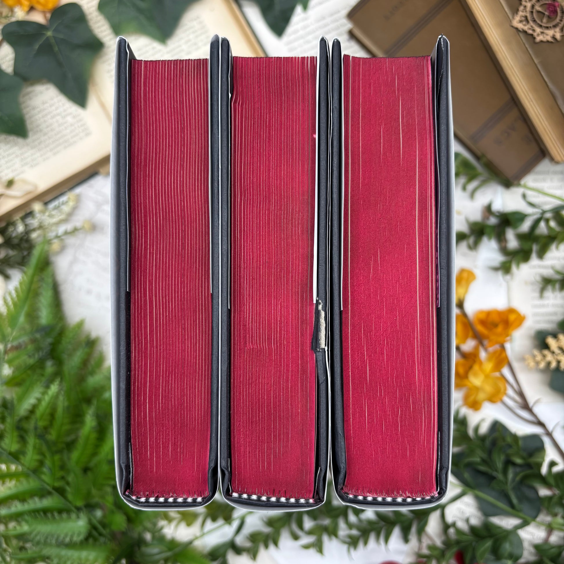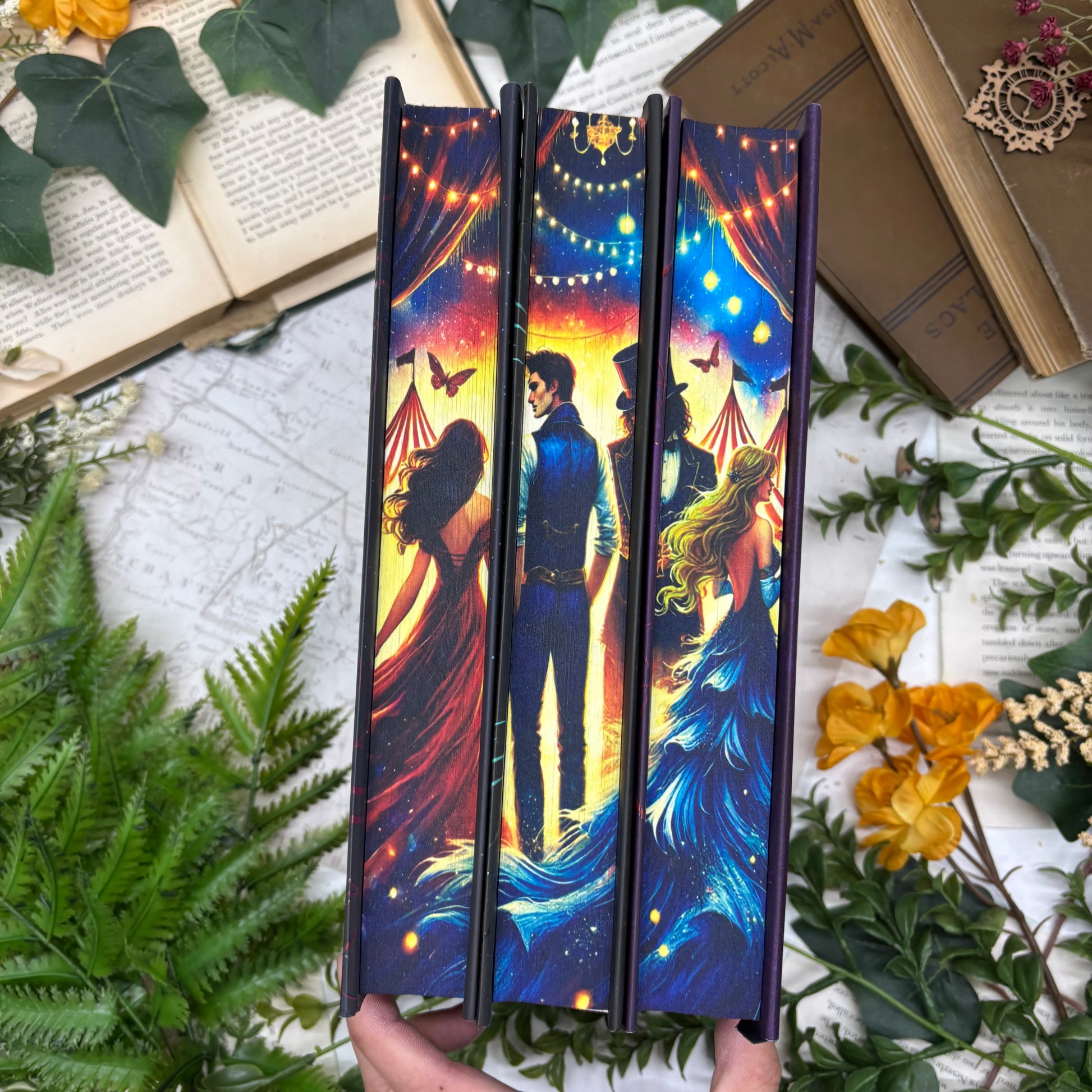 WOUNDED hardcover books with custom designed and printed book edges. Books have some tears in dust jackets and crinkled corners. Tops and bottoms are hand airbrushed. These books are handmade. As a small business run by a group of friends who adore beautiful books, we take pride in every detail, ensuring each book is a true work of art and a delightful addition to your bookshelf. Perfect for book lovers who cherish special editions!
